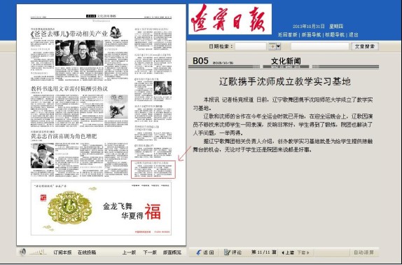辽宁日报、沈阳晚报对次签约仪式进行了跟踪报道,并在10月31日的辽宁日报文化新闻版刊登。