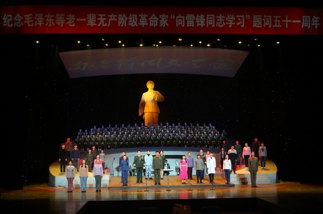 3月4日下午14:00,由公司和沈阳军区前进文工团联合排演的大型清唱剧《雷锋》在辽宁大剧院隆重上演,以纪念毛泽东等老一辈无产阶级革命家“向雷锋同志学习”题词发表51周年。市委教科工委副书记张恩、宣传部长霍泓、统战部长曹晓波,市委宣传部文艺处副处长刘烁,团市委副书记马宁,公司党委副书记贾玉明、副董事长王大超与全市29所高校1300余名老员工共同观看了演出。