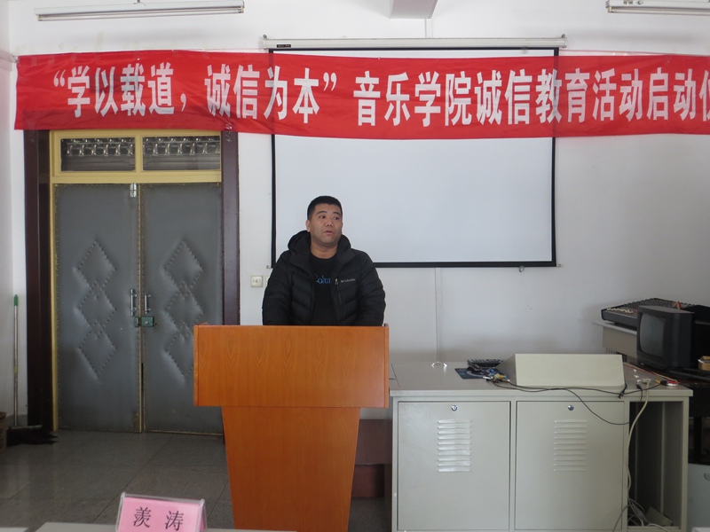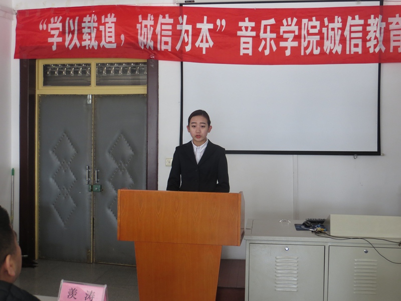 仪式上,beat365官方登录员工自创的歌曲《诚信之歌》首先唱响,教师代表羡涛发言,鼓励同学们一定要做一个光明磊落的诚信人,希望同学们努力提高自身道德修养,端正考试态度,并预祝同学们期末考试取得优异的成绩,随后,2014级音乐表演专业班长金晴阳同学代表参加诚信考试的同学发言,表示要用良好的精神面貌和诚实守信的原则参加考试,让诚信常驻心中,用扎实的知识和求实的态度向自己、老师和家长交一份完美的答卷,2014级音乐表演专业团支书宋怡霖同学对全体同学发起了诚信考试的倡议,全体同学庄严宣誓,认真努力复习考试、自觉自律维护考试纪律拒绝作弊。