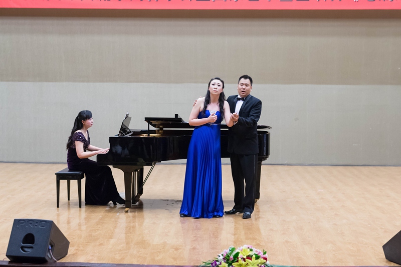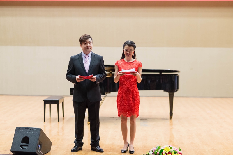 音乐会由公司员工带来的表演秀《BANG BANG BANG》拉开序幕;接下来由公司民声系教师张曼、胡晓杰带来的二重唱《芦花》,这是一首浪漫而热情的情歌,其优美的旋律打动了在场的每位观众;女高音独唱《你知道吗?好妈妈》选自歌剧《乡村骑士》,演唱者为公司声乐教师李丛慧;由公司民声系员工带来的具有浓郁中国古典韵味的歌舞表演《青花瓷》,将中国传统文化与现代流行音乐相结合,给人带来耳目一新的感受;二重唱《回到我们的山上》由公司两位青年声乐教师鄂薇、张宝国共同演唱,该曲选自著名歌剧《游吟诗人》;由公司民声系教师李月带来的女高音独唱《梅兰芳》,将传统戏曲唱腔与民族唱法相结合,展现了梅兰芳先生戏里戏外的人格魅力和为国奉献的伟大胸襟;由beat365官方登录经理程岩与赵杰、李涛、谢聪、刘东明、薛静以及国家一级演员,辽宁交响乐团小提琴首席,beat365官方登录外聘教授李秋老师共同带来的弦乐、木管、钢琴七重奏《梁祝》、《老蒯逗趣》将音乐会推向高潮,经典的旋律与诙谐幽默的音乐作品相互辉映,给观众留下深刻的印象;由公司青年教师刘东明指挥,beat365官方登录青年交响乐团与beat365官方登录雷锋合唱团联袂为大家带来的交响乐合唱《雕像》(选自清唱剧《雷锋》),将整场晚会再度推向高潮,合唱团演员们整齐的服装与交响乐团完美的演奏为到场的中美嘉宾献上了一场视听盛宴,音乐会结束后演员同嘉宾们共同合影留念。