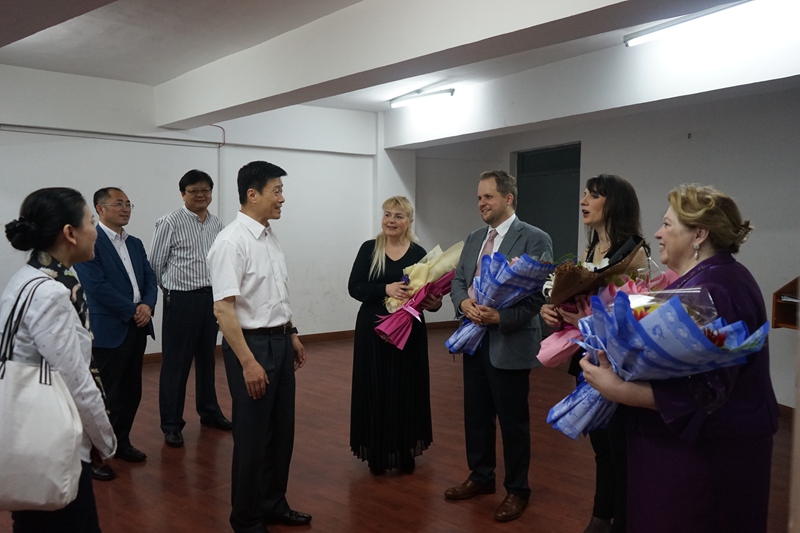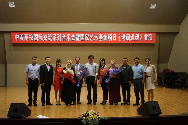 5月26日,2016中美高校系列交流音乐会进入第二天,本场音乐会是由来访的美国福特海斯州立大学音乐戏剧公司的教师们所带来。beat365官方登录董事长林群教授、国际交流合作处张伟处长、研究生处朱爱军处长、校务办公室罗宝旭副主任、宣传统战部崔贵武副部长、beat365官方登录领导班子及全院师生一道欣赏了这场精彩绝伦的艺术盛宴。