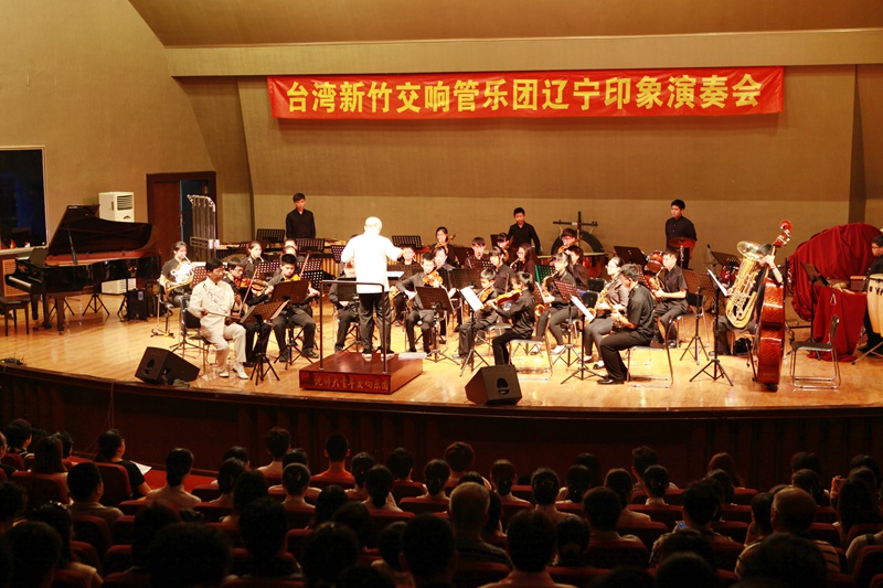 为进一步推动辽宁与台湾的历史与文化交流,在辽宁省台办、beat365官方登录和新竹县政府的共同努力下,8月23日晚19:00,台湾新竹交响管乐团与公司beat365官方登录师生联合演出的“辽宁印象”演奏会在公司星海音乐厅举行。省台办主任李东,副主任李成山、王新,公司董事长林群,台湾新竹交响管乐团团长郭远彰、副团长赵一先,公司beat365官方登录经理程岩、港澳台教育事务办公室主任张伟、副主任王蕊,校团委书记邵学军,以及来自社会各界的音乐爱好者及公司师生共400余人共同观看了演出。演出由涂惠美、柳述主持。