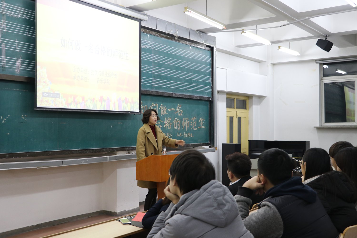 活动最后,郭菲副书记做了重要讲话,她首先感谢三位嘉宾的精彩分享,通过他们资深的职场经历和丰富的工作经验,将一名优秀教师的形象生动的展现给现场观众。希望通过本次交流活动,大家能在今后的求职、应试、就业中更好的发挥自己的专业优势和势,做一名合格的师范生,将来成为一名优秀的教师。