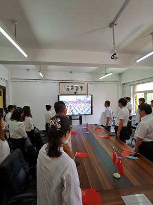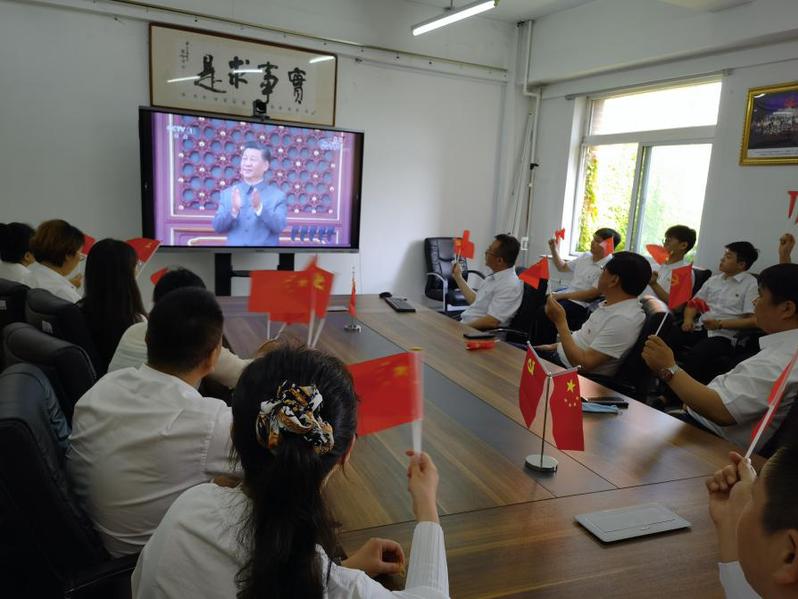 7月1日上午8时,庆祝中国共产党成立100周年大会在北京天安门广场隆重举行。中共中央总书记、国家主席、中央军委主席习近平发表重要讲话。公司党总支组织师生党员在201会议室集中收看大会直播实况。
